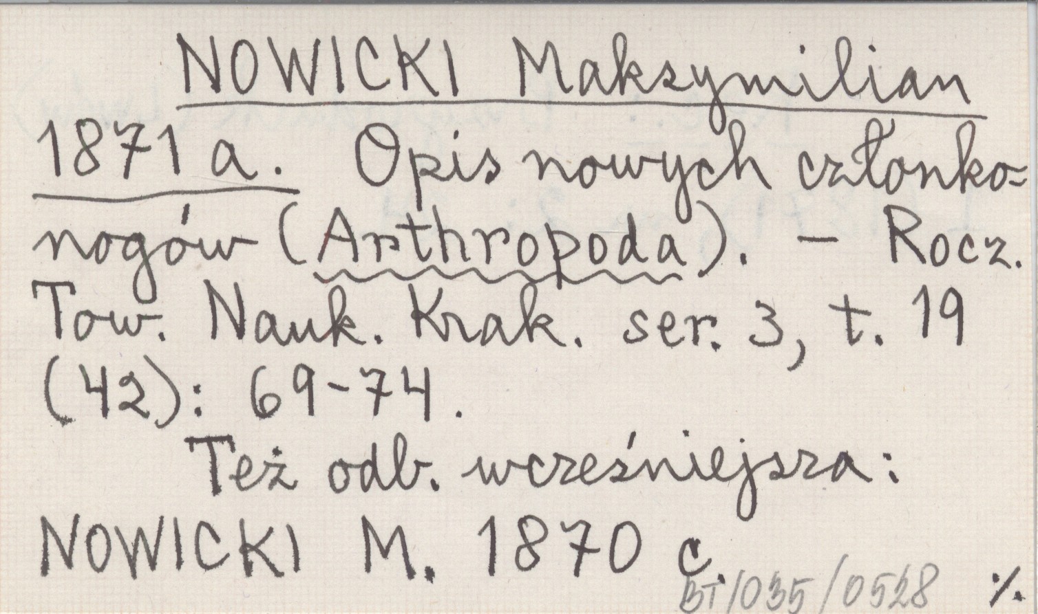 NOWICKI Maksymilian 1871 a Opis nowych członkonogów (Arthropoda).