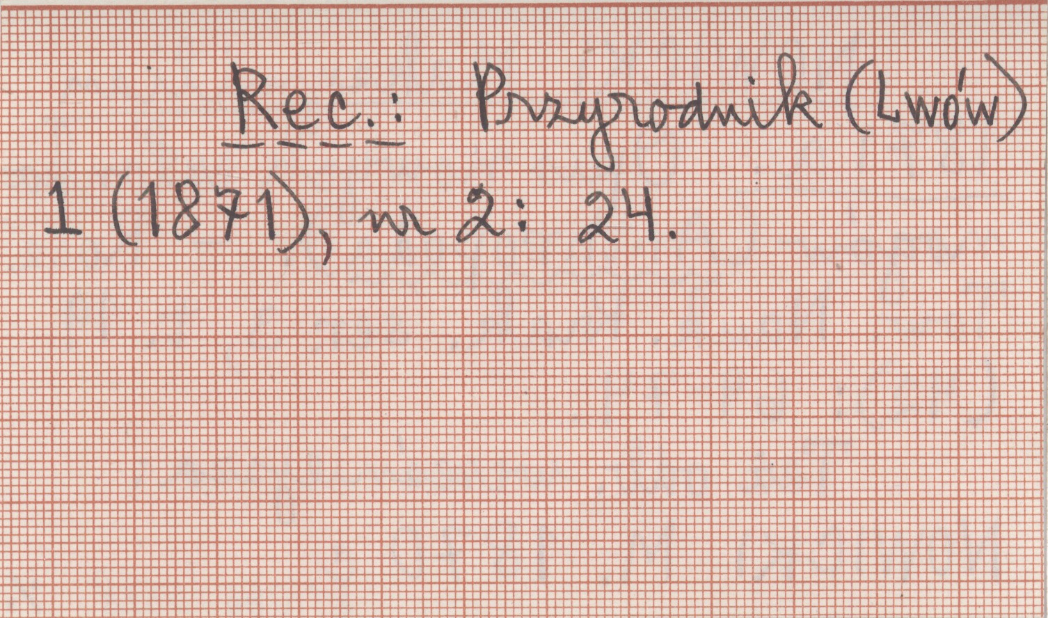Rocznik Towarzystwa Naukowego Krakowskiego, Ser. 3, t. 19 (42): 69-74. Też odb. wcześniejsza: NOWICKI M. 1870 c REC: Przyrodnik (Lwów) 1 (1871), nr 2: 24