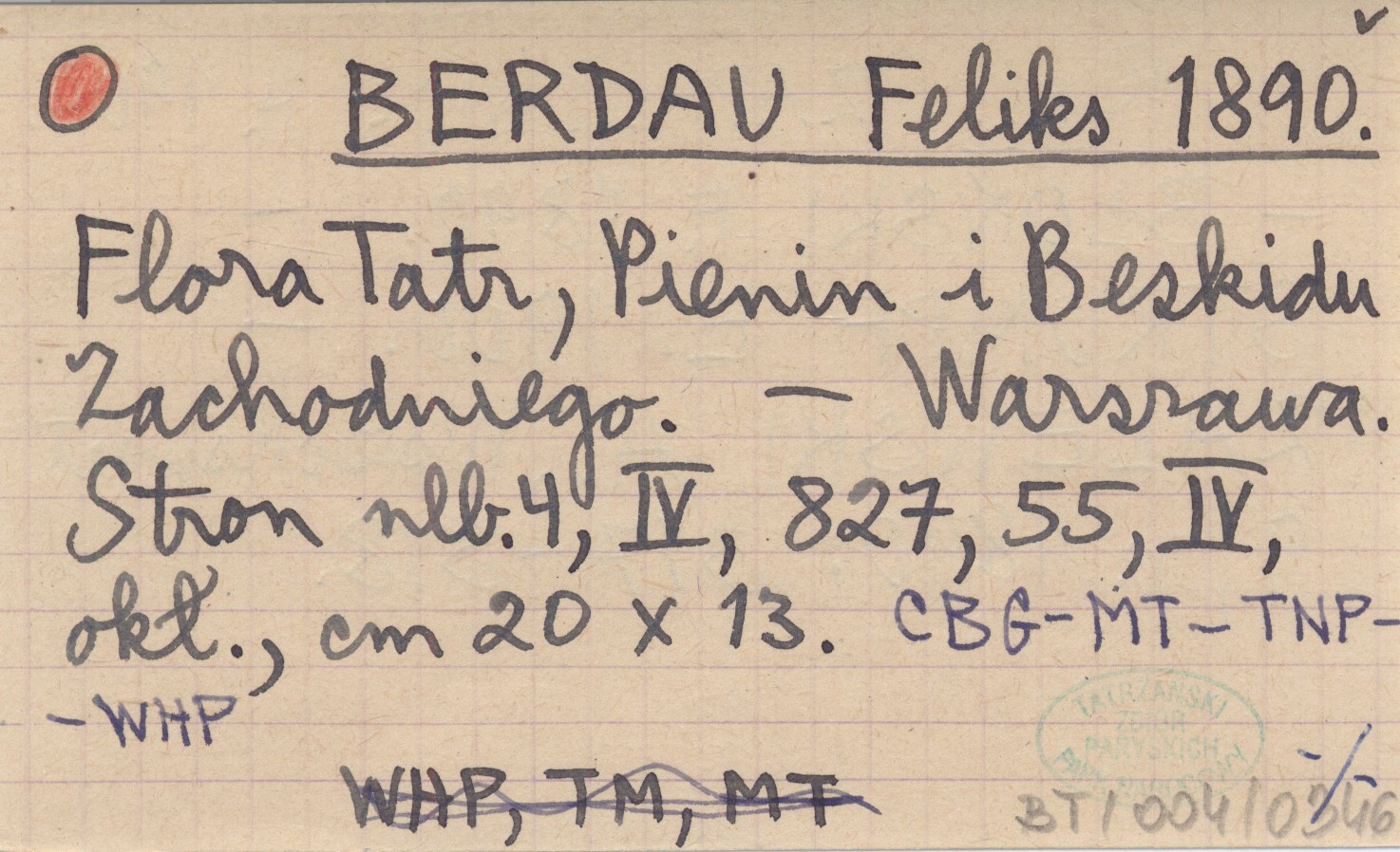 BERDAU Feliks 1890 Flora Tatr, Pienin i Beskidu Zachodniego.