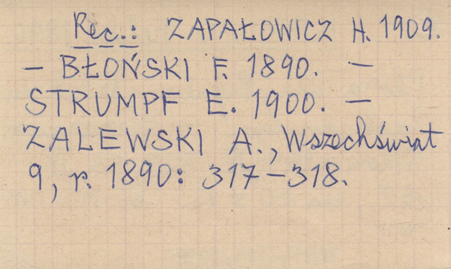 Warszawa , [4], IV, 827, 55, IV s., okł., 20x13 cm. REC: ZAPAŁOWICZ H. 1909 ; BŁOŃSKI F. 1890 ; STRUMPF E. 1900 ; ZALEWSKI A. Wszechświat 9, r. 1890: 317-318 ;
