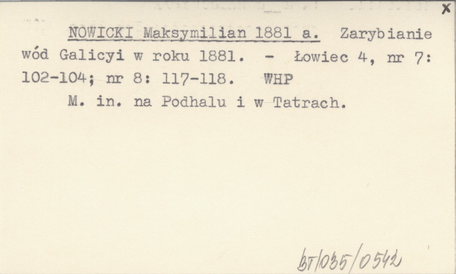 NOWICKI Maksymilian 1881 a Zarybianie wód Galicyi w roku 1881.