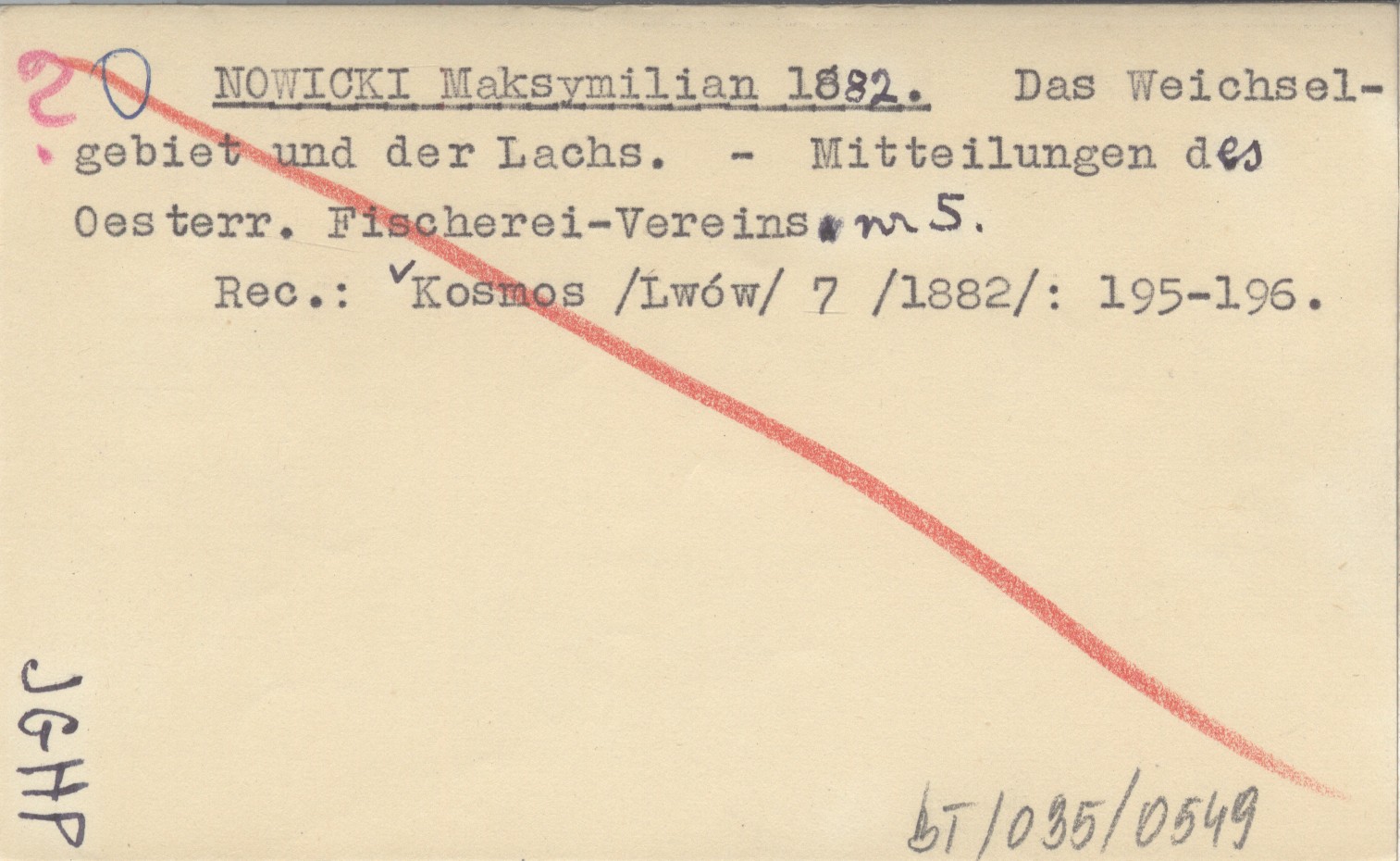 Mitteilungen des Oesterr. Fischerei-Vereins, Nr 5. REC: Kosmos (Lwów) 7 (1882): 195-196