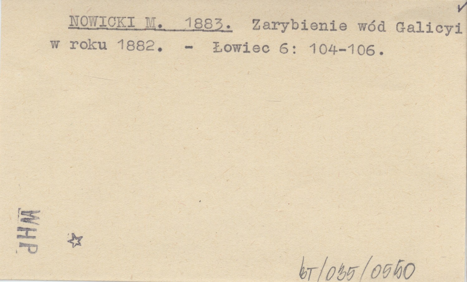 NOWICKI M. 1883 Zarybienie wód Galicyi w roku 1882.
