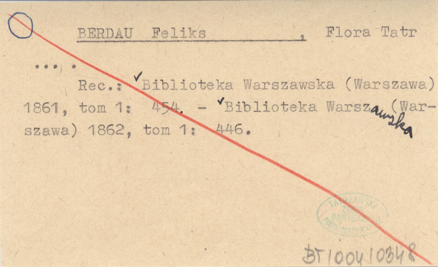 , REC: Biblioteka Warszawska (Warszawa) 1861, t. 1: 454.- Biblioteka Warszawska (Warszawa) 1862, t. 1: 446.