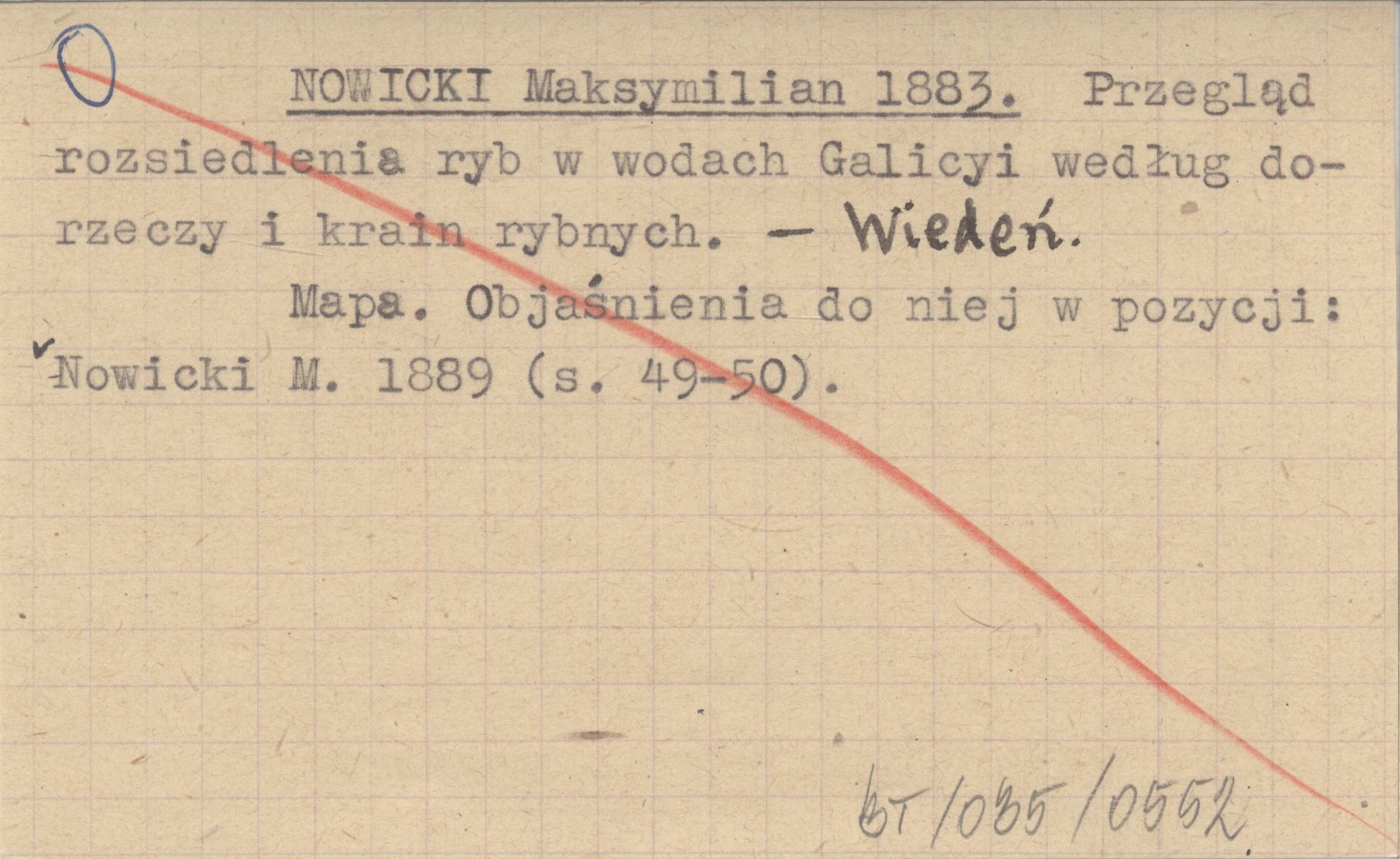 NOWICKI Maksymilian 1883 Przegląd rozsiedlenia ryb w wodach Galicyi według dorzeczy i krain rybnych.
