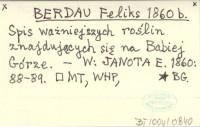 BERDAU Feliks 1860 b Spis ważniejszych roślin znajdujących się na Babiej Górze.