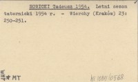 NOWICKI Tadeusz 1954 Letni sezon taternicki 1954 r.