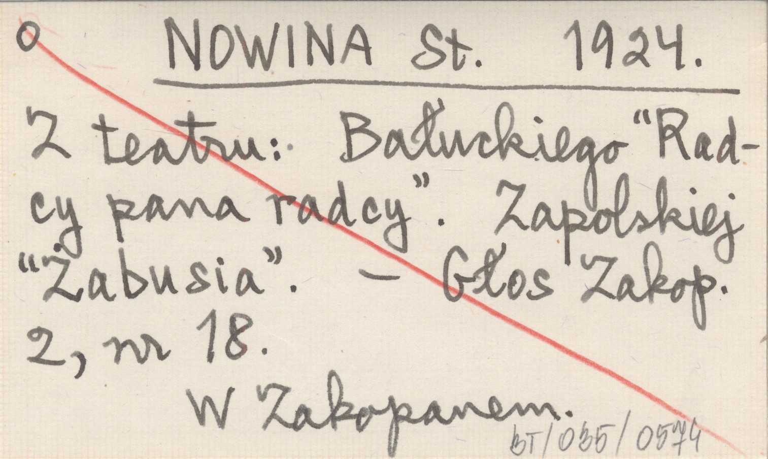NOWINA St. 1924 Z teatru: Bałuckiego "Radcy pana radcy". Zapolskiej "Żabusia".