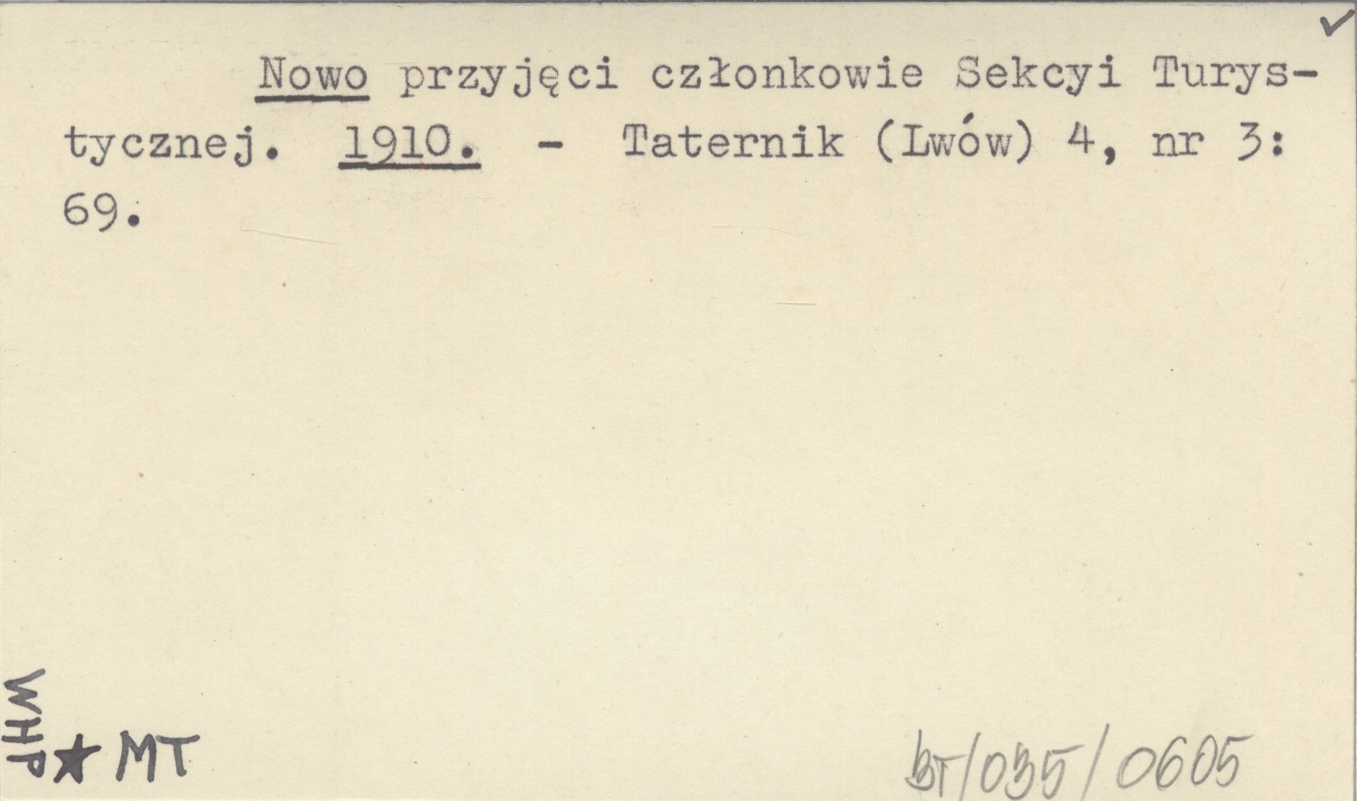 Nowo przyjęci członkowie Sekcyi Turystycznej. 1910