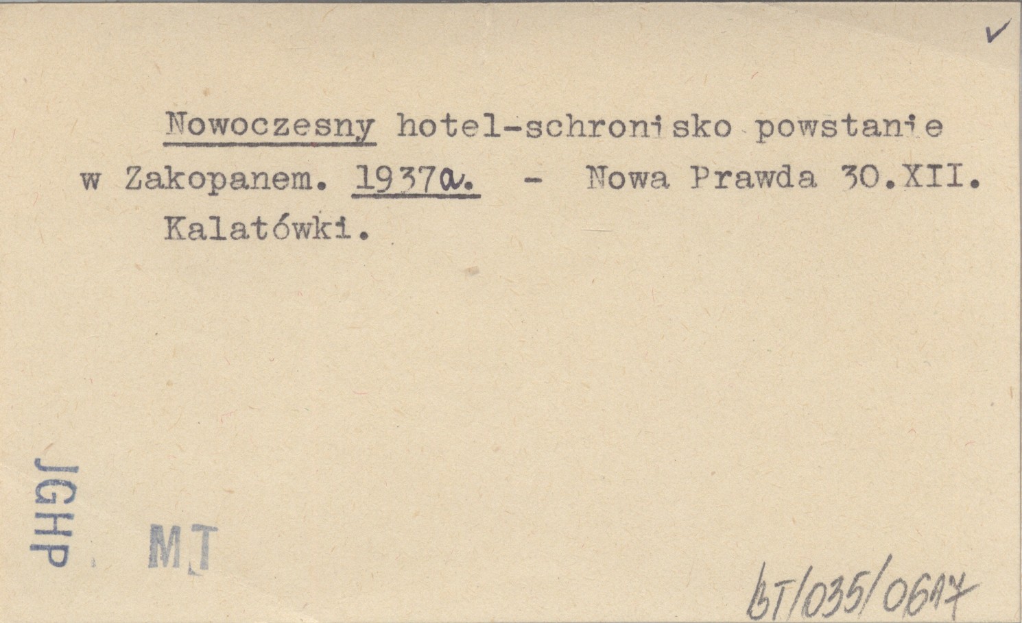 Nowa Prawda, 30 XII. Kalatówki.