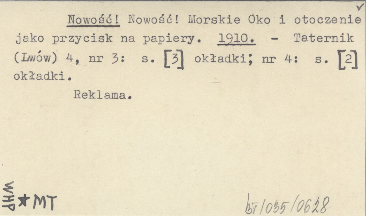 Taternik (Lwów) , 4, nr 3: [3] (okł.) ; nr 4: [2] (okł.). Reklama.