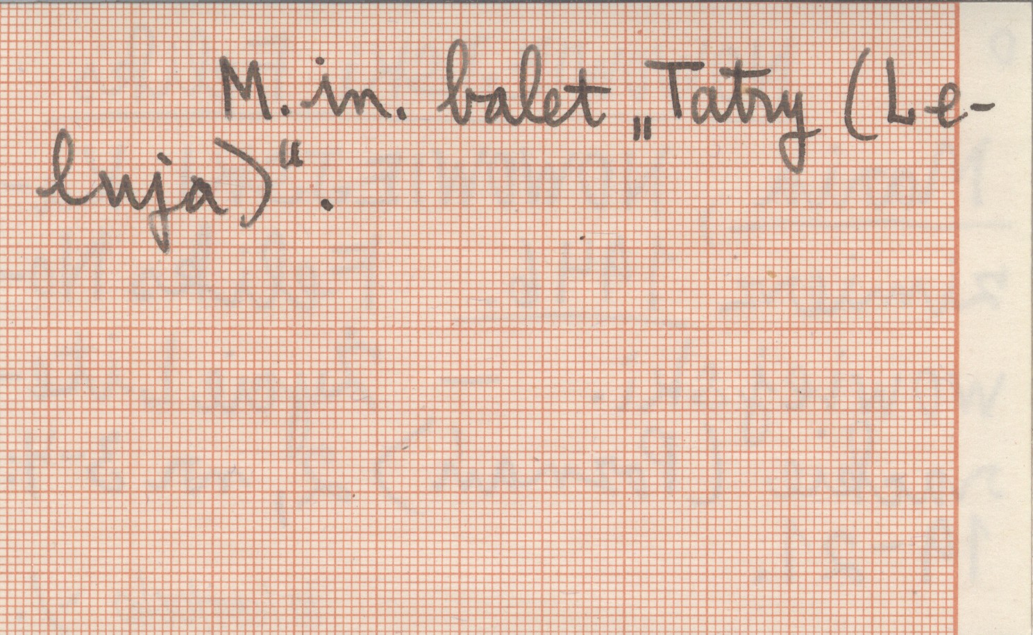 Życie Literackie (Poznań) , 2, nr 3-4: 19-21. M.in. balet "Tatry (Leluja)".