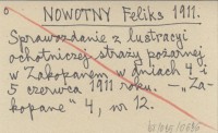 NOWOTNY Feliks 1911 Sprawozdanie z lustracyi ochotniczej straży pożarnej w Zakopanem w dniach 4 i 5 czerwca 1911 roku.