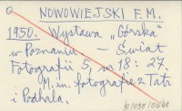 NOWOWIEJSKI F. M. 1950 Wystawa "Górska" w Poznaniu.