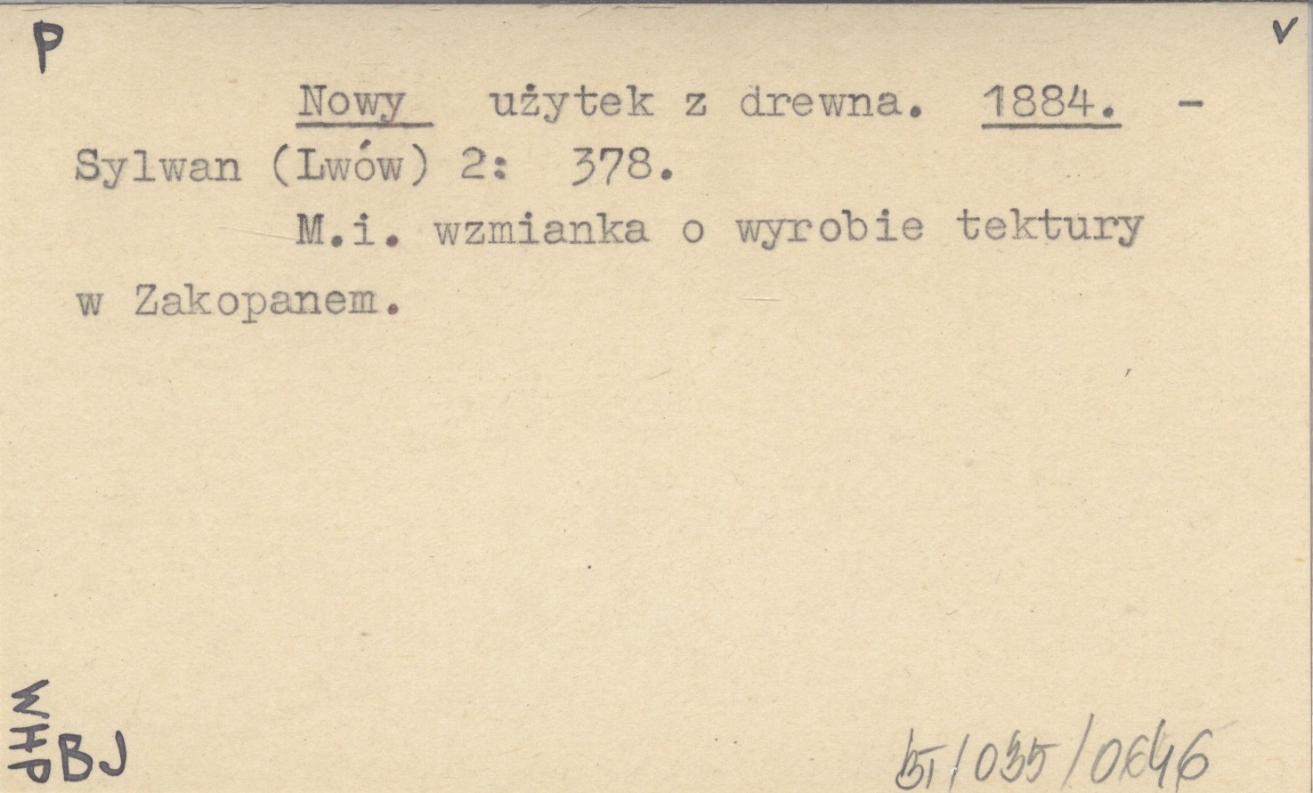 Sylwan (Lwów) , 2: 378. M.in. wzmianka o wyrobie tektury w Zakopanem.