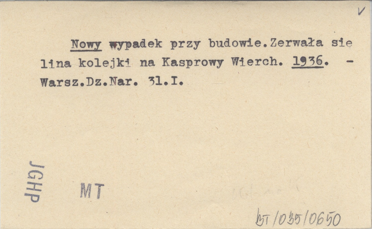 Nowy wypadek przy budowie.Zerwała się lina kolejki na Kasprowy Wierch. 1936