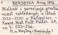BERDECKA Anna 1976... Wielkość i parcelacja gruntów miast zakładanych w latach 1333-1370 w Małopolsce.