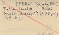 BERECZ Károly 1850 Tátrai levelek.