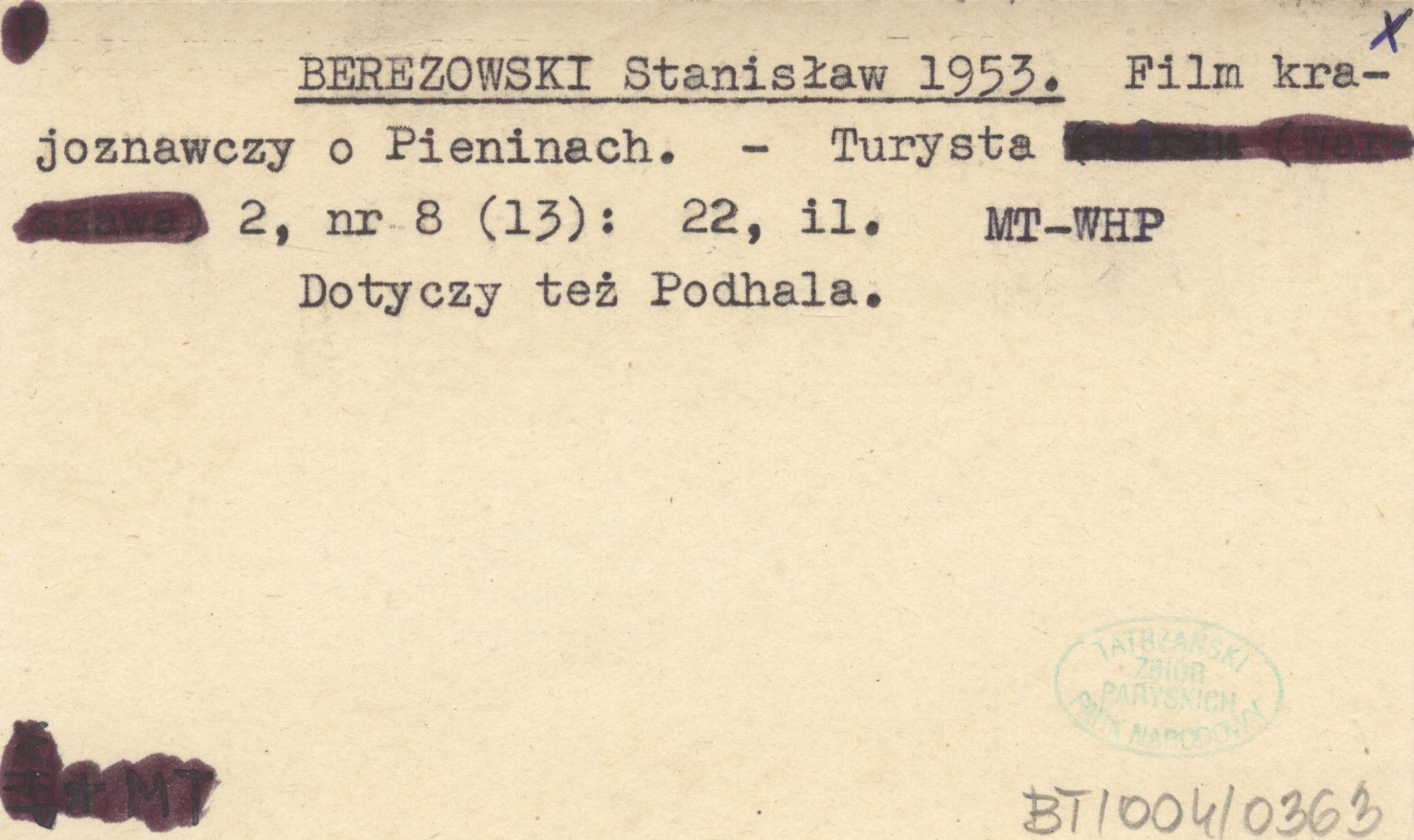 BEREZOWSKI Stanisław 1953 Film krajoznawczy o Pieninach.