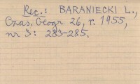 Warszawa , 132 s., il., 1 mapa, okł. (il.), 21x15 cm. REC: BARANIECKI L., Czas. Geogr. 26, r. 1955, nr 3: 283-285.