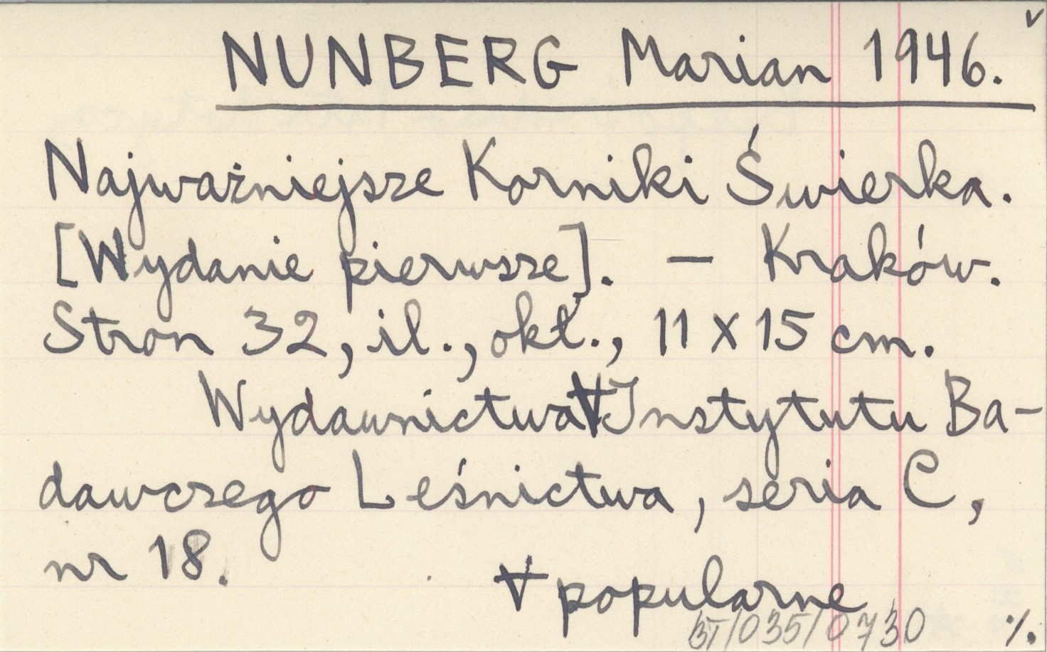 NUNBERG Marian 1946 Najważniejsze Korniki Świerka. [Wydanie pierwsze].