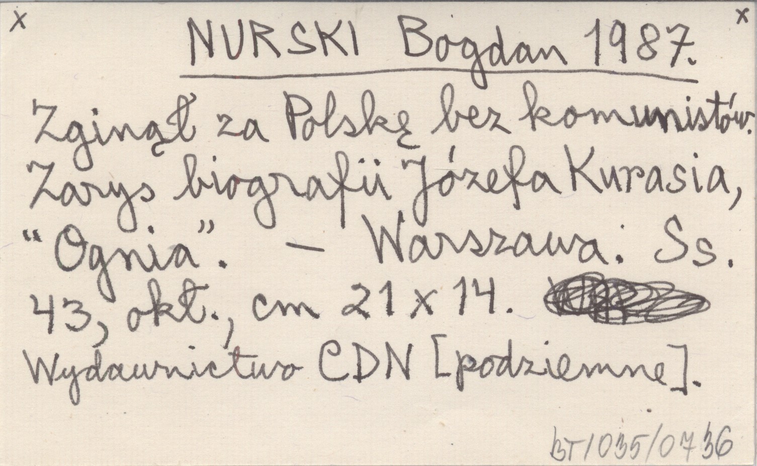 NURSKI Bogdan 1987 Zginął za Polskę bez komunistów. Zarys biografii Józefa Kurasia, "Ognia".