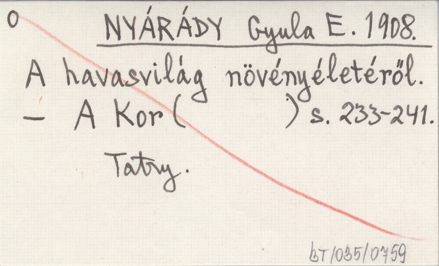 NYÁRÁDY Gyula E. 1908 A havasvilág növényéletéről.