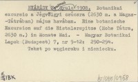 NYÁRÁDY Gyula Erasmus 1908 Botanikai excursio a Jégvölgyi csúcsra (2630 m. a Magas-Tátrában) május havában. Eine botanische Excursion auf die Eistalerspitze (Hohe Tátra, 2630 m.) im Monate Mai.