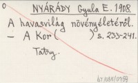 NYÁRÁDY Gyula E. 1908 A havasvilág növényéletéről.