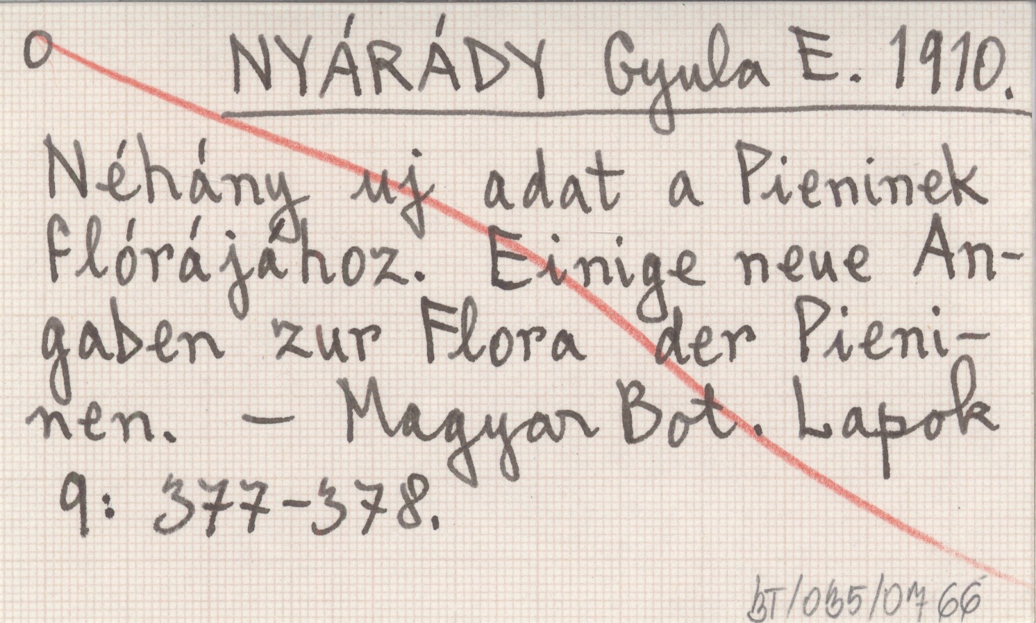 NYÁRÁDY Gyula E. 1910 Néhány uj adat a Pieninek flórájához. Einige neue Angaben zur Flora der Pieninen.