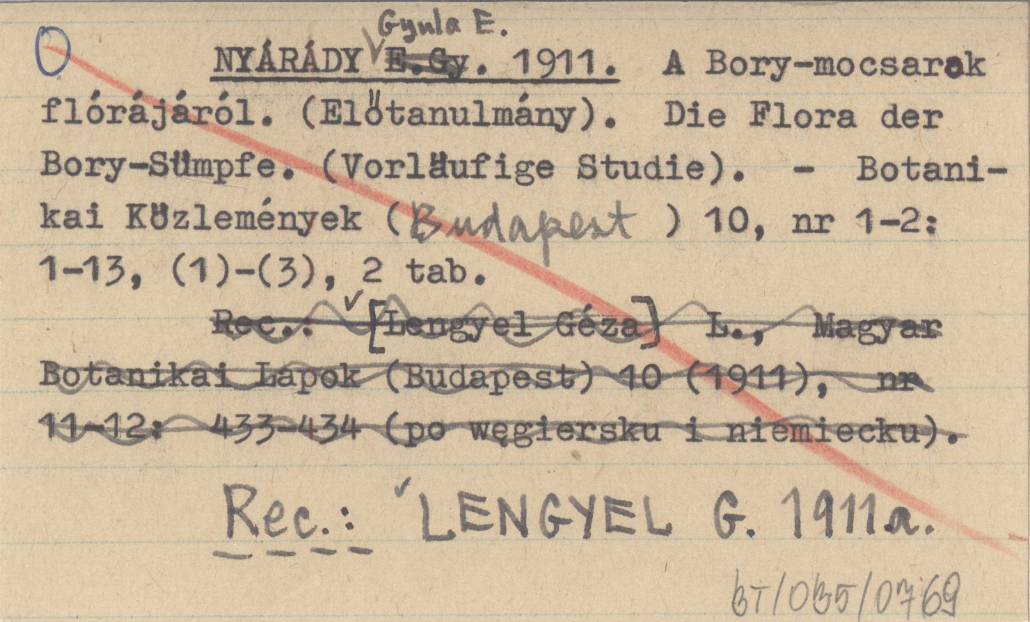 NYÁRÁDY Gyula E. 1911 A Bory-mocsarok flórájáról. (Előtanulmány). Die Flora der Bory-Sümpfe. (Vorläufige Studie).