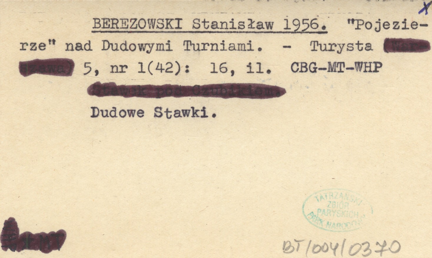 BEREZOWSKI Stanisław 1956 "Pojezierze" nad Dudowymi Turniami.