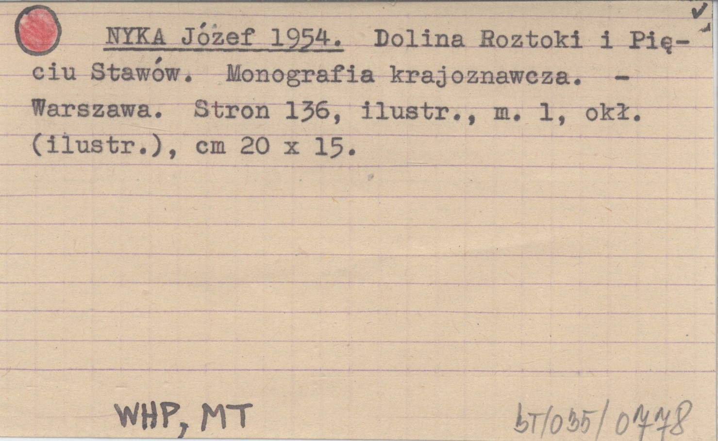 NYKA Józef 1954 Dolina Roztoki i Pięciu Stawów. Monografia krajoznawcza.