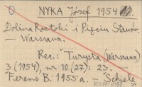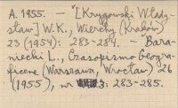 Warszawa , 136 s., il., 1 m., okł. (il.), 20x15 cm. REC: Turysta (Warszawa) 3 (1954), nr 10 (27): 23 ; FERENS B. 1955 a ; SCHIELE A. 1955 ; [KRYGOWSKI Władysław] W. K., Wierchy (Kraków) 23 (1954): 283-284 ; BARANIECKI L., Czasopismo Geograficzne (Warszawa, Wrocław) 26 (1955), nr 3: 283-285 ; ORLICZ M. 1957 ; Dziennik Polski (Kraków) r. 1954, nr 239: 4 ;