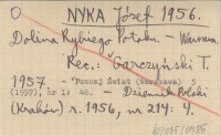 Warszawa , 204 s., m. REC: Orlicz M. 1957. KSANDR Jiří, Ochrana Přírody 13, r. 1958, nr 8: 224. Garczyński T. 1957. Poznaj Świat (Warszawa) 5 (1957), nr 1: 46. Dziennik Polski (Kraków) r. 1956, nr 214: 4. [Babiński Mieczysław] bab., Wierchy (Kraków) 25 (1956): 290. Turysta (Warszawa) 5 (1956), nr 12 (53): 23. Poznaj Świat (Warszawa), r. 1957, nr 1: 46.