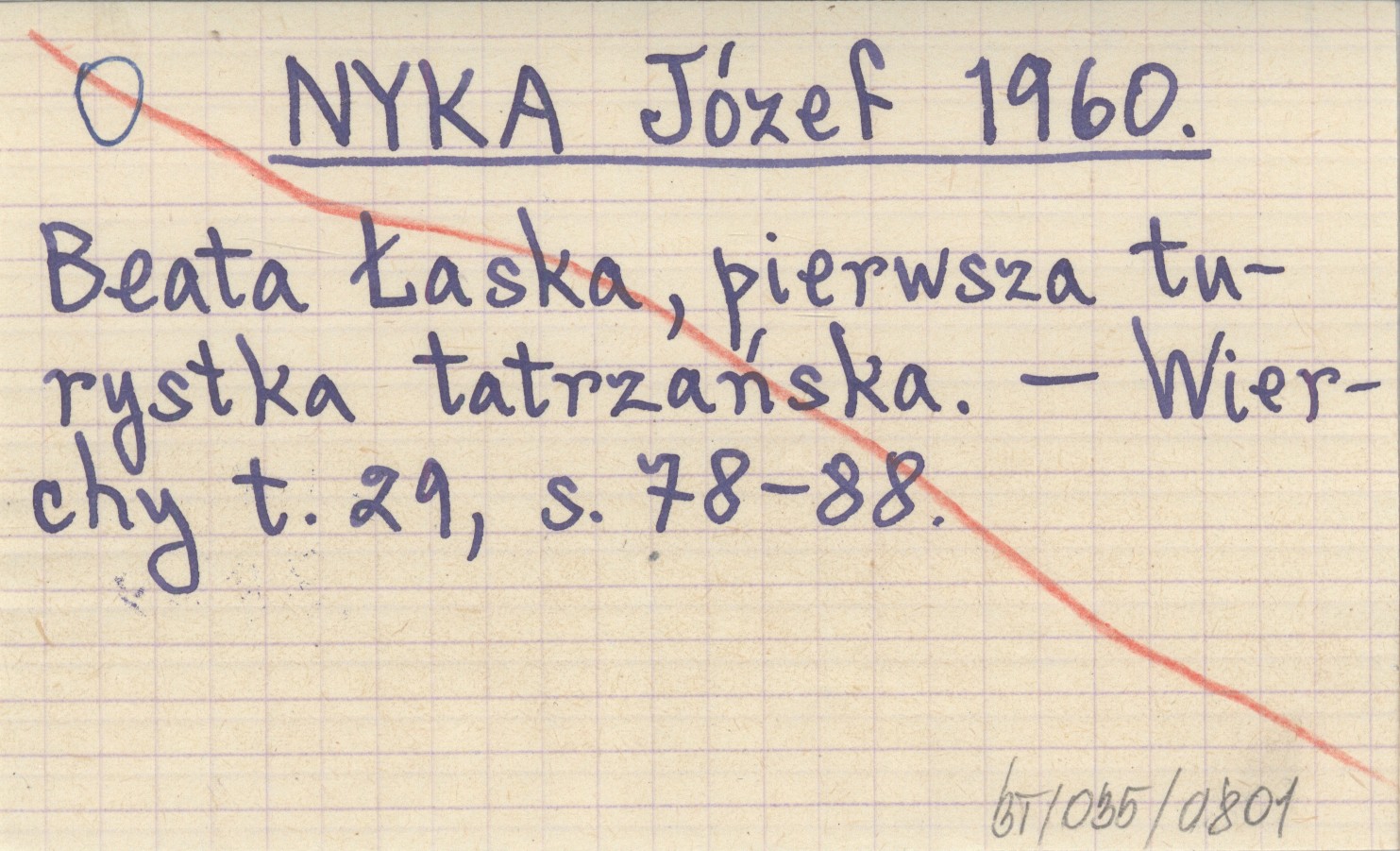 NYKA Józef 1960 Beata Łaska, pierwsza turystka tatrzańska.