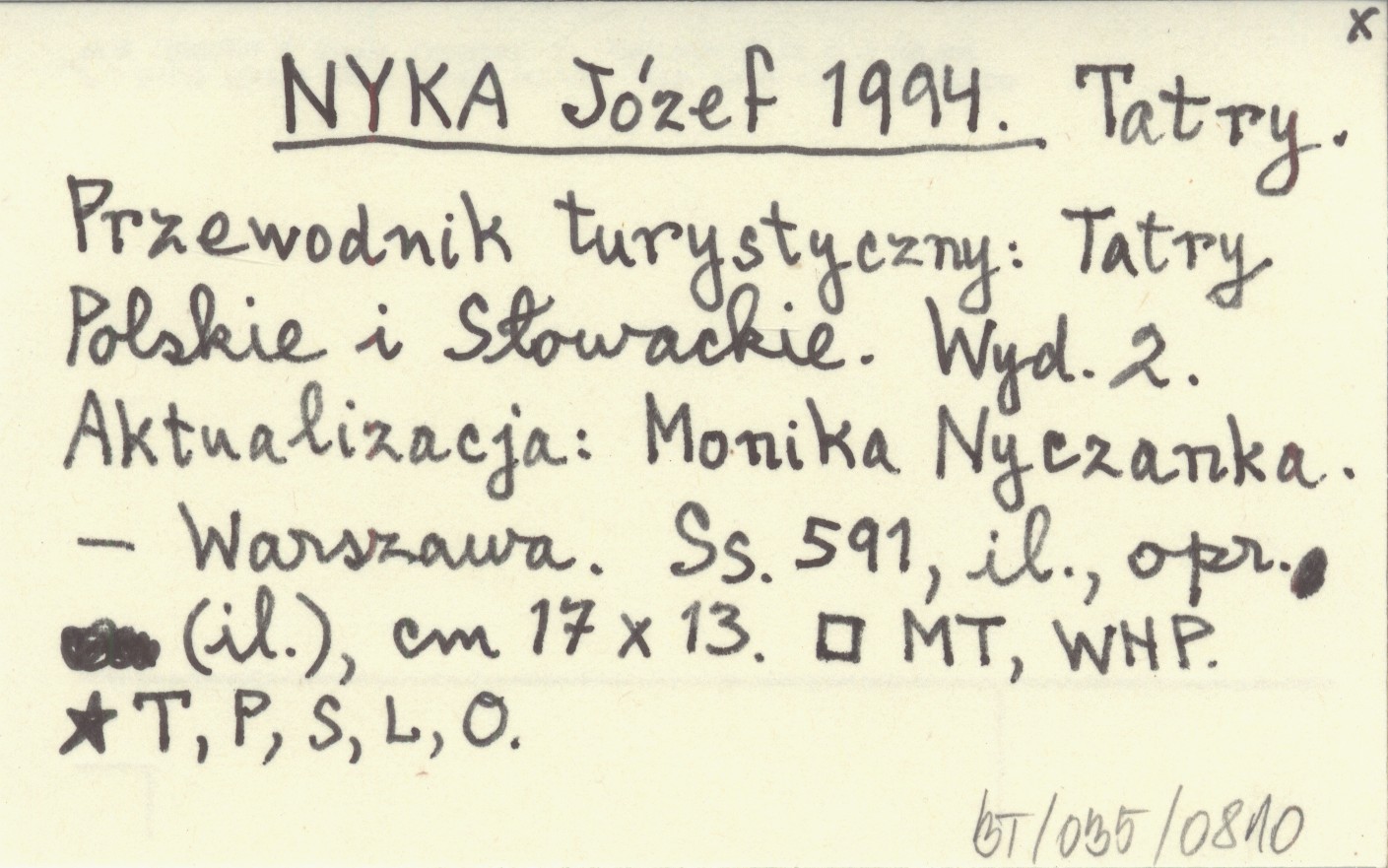 NYKA Józef 1994 Tatry. Przewodnik turystyczny: Tatry Polskie i Słowackie.