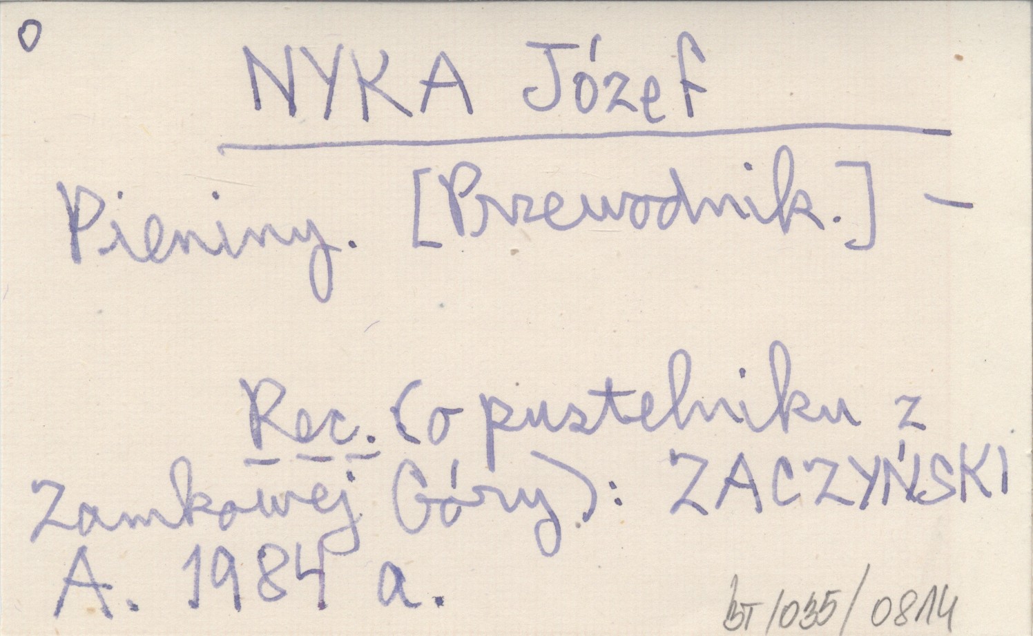 , REC: ZACZYŃSKI A. 1984 a (o pustelniku z Zamkowej Góry).