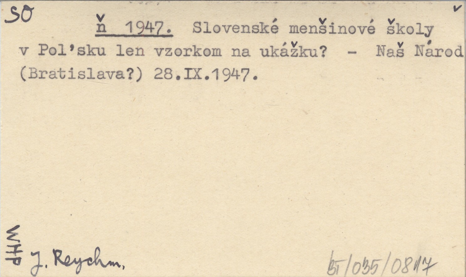 ň 1947 Slovenské menšinové školy v Poľsku len vzorkom na ukážku?