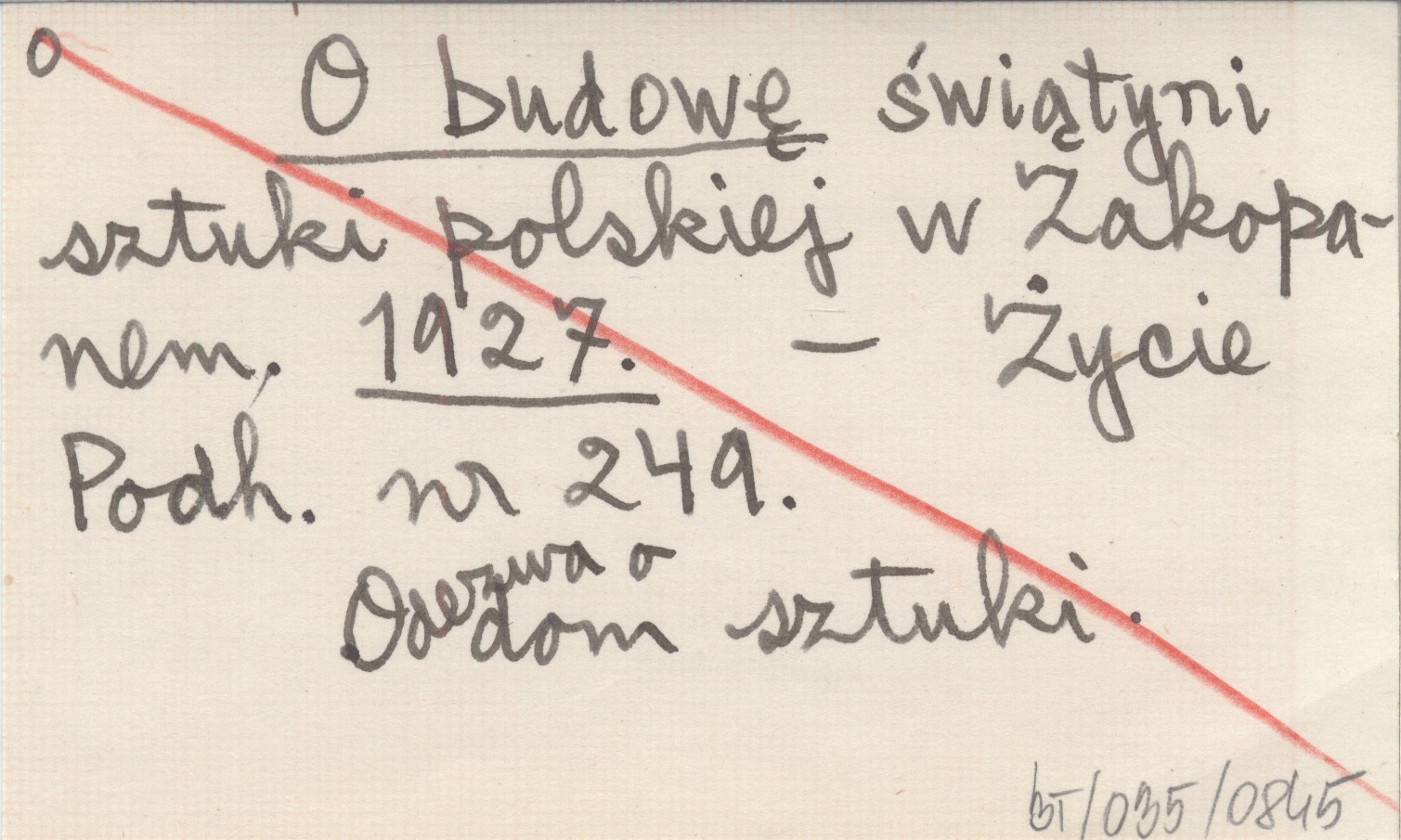 O budowę świątyni sztuki polskiej w Zakopanem. 1927