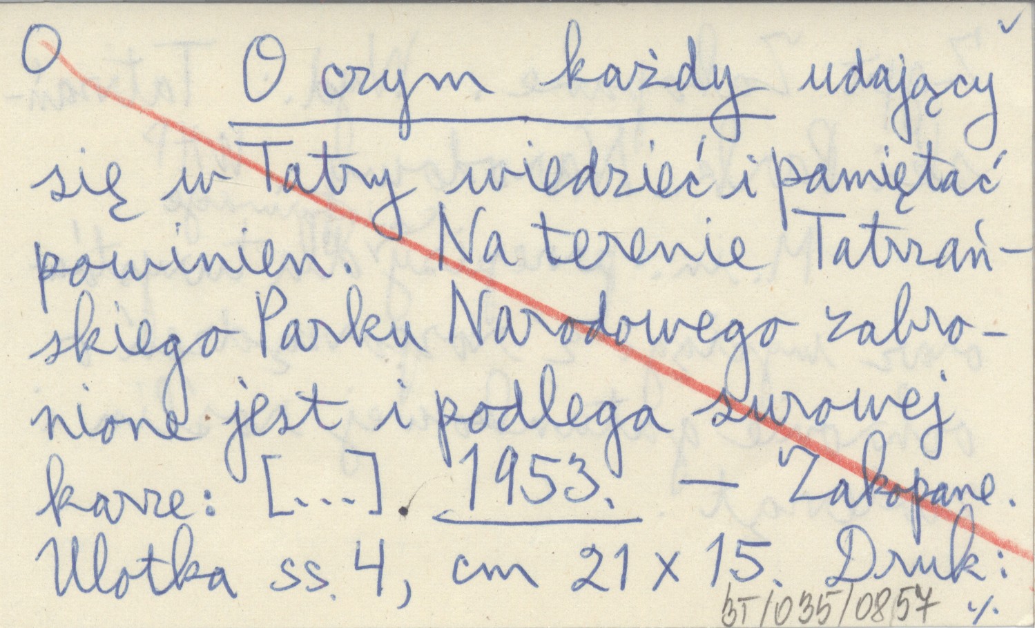 O czym każdy udający się w Tatry wiedzieć i pamiętać powinien. Na terenie Tatrzańskiego Parku Narodowego zabronione jest i podlega surowej karze:[...]. 1953