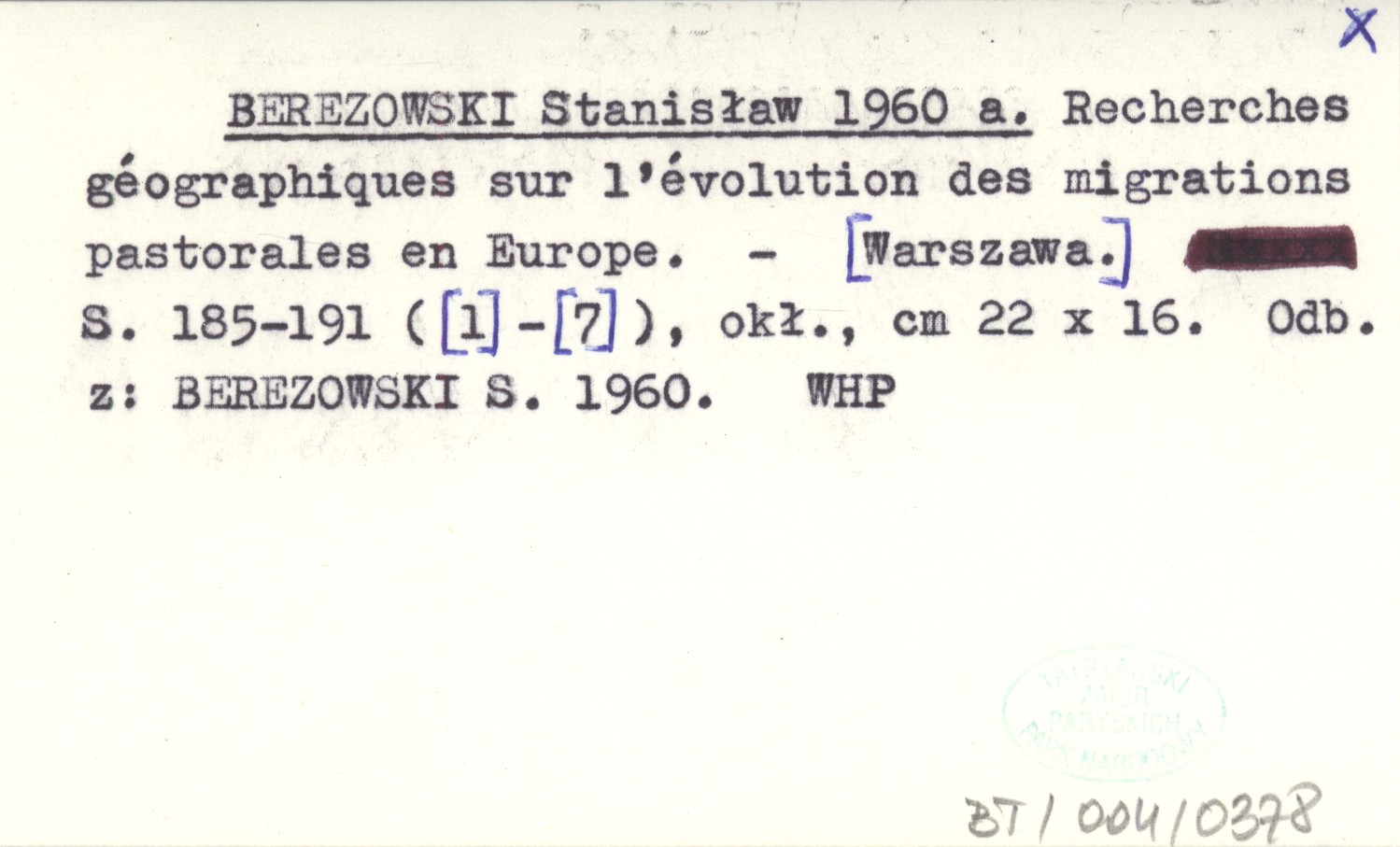 BEREZOWSKI Stanisław 1960 a Rechercher géographiques sur l'évolution des migrations pastorales en Europe.