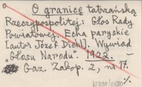 O granicę tatrzańską Rzeczypospolitej: Głos Rady Powiatowej. Echa paryskie [autor Józef Diehl]. Wywiad "Głosu Narodu". 1922