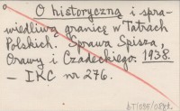 O historyczną i sprawiedliwą granicę w Tatrach Polskich. Sprawa Spisza, Orawy i Czadeckiego. 1938