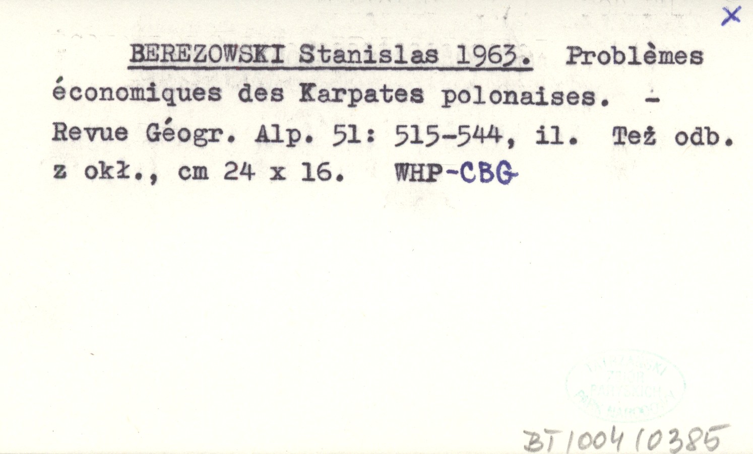 BEREZOWSKI Stanisław 1963 Probléms économiques des Karpates polonaises.