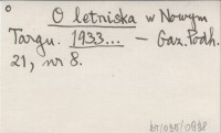 O letniska w Nowym Targu. 1933...