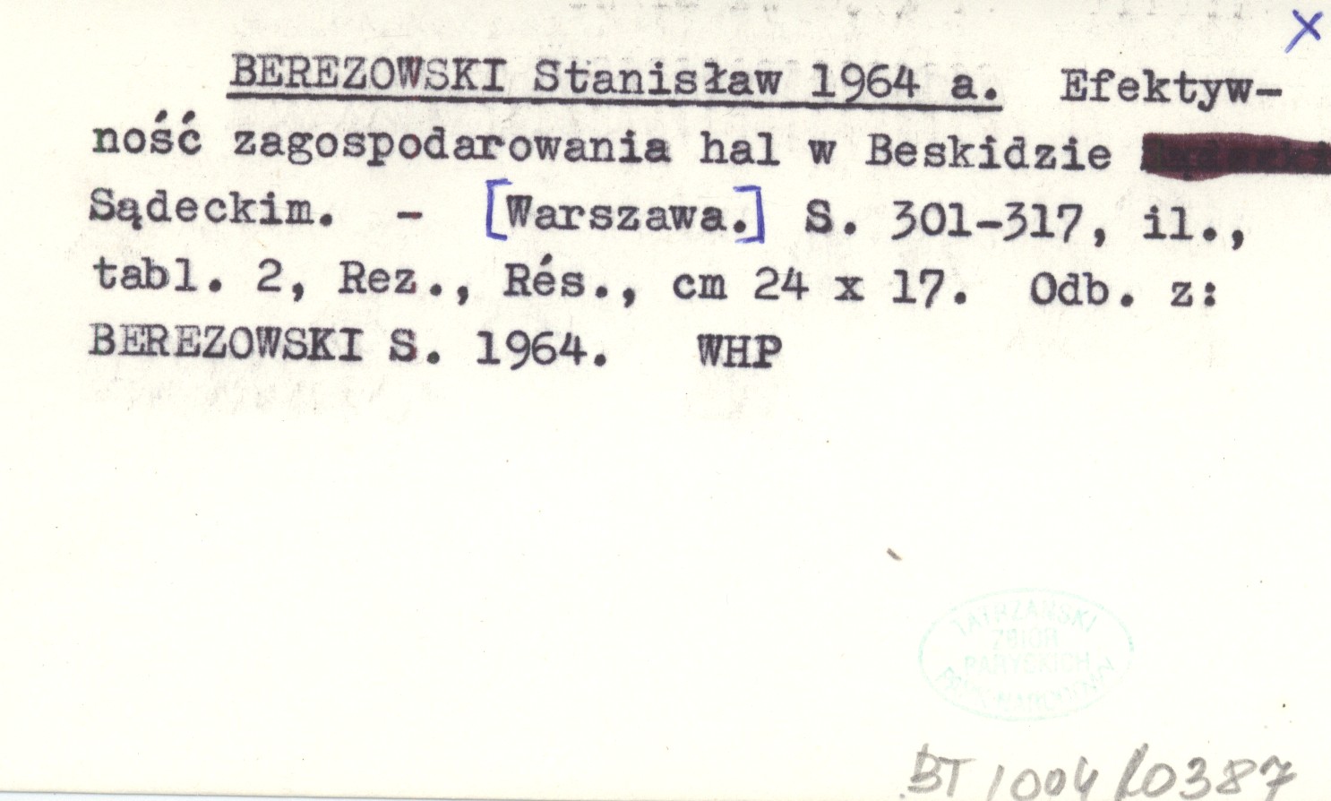 BEREZOWSKI Stanisław 1964 a Efektywność zagospodarowania hal w Beskidzie Sądeckim.