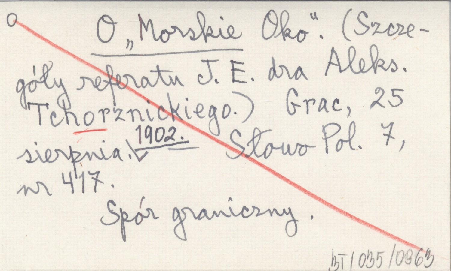 O "Morskie Oko". (Szczegóły referatu J. E. dra Aleks. Tchorznickiego). Grac, 25 sierpnia. 1902