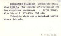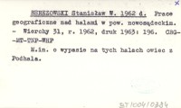 BEREZOWSKI Stanisław W. 1962 d Prace geograficzne nad halami w pow. nowosądeckim.