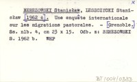 BEREZOWSKI Stanisław LESZCZYCKI, Stanisław. ; 1962 b Une enquete internationale sur les migrations pastorales.